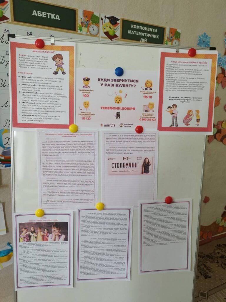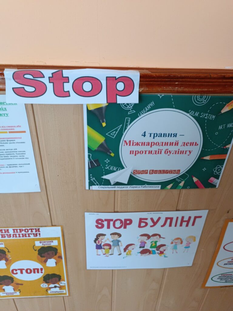Впродовж дня класні керівники, вихователі провели тематичні виховні заходи по класах. Соціальний педагог говорила з учнями на тему: “STOP блінг”. Метою роботи педагогів було виховання в учнів почуття емпатії та переживання до дитини, яка зазнає насильства, формування навичків відповідальної та безпечної поведінки.